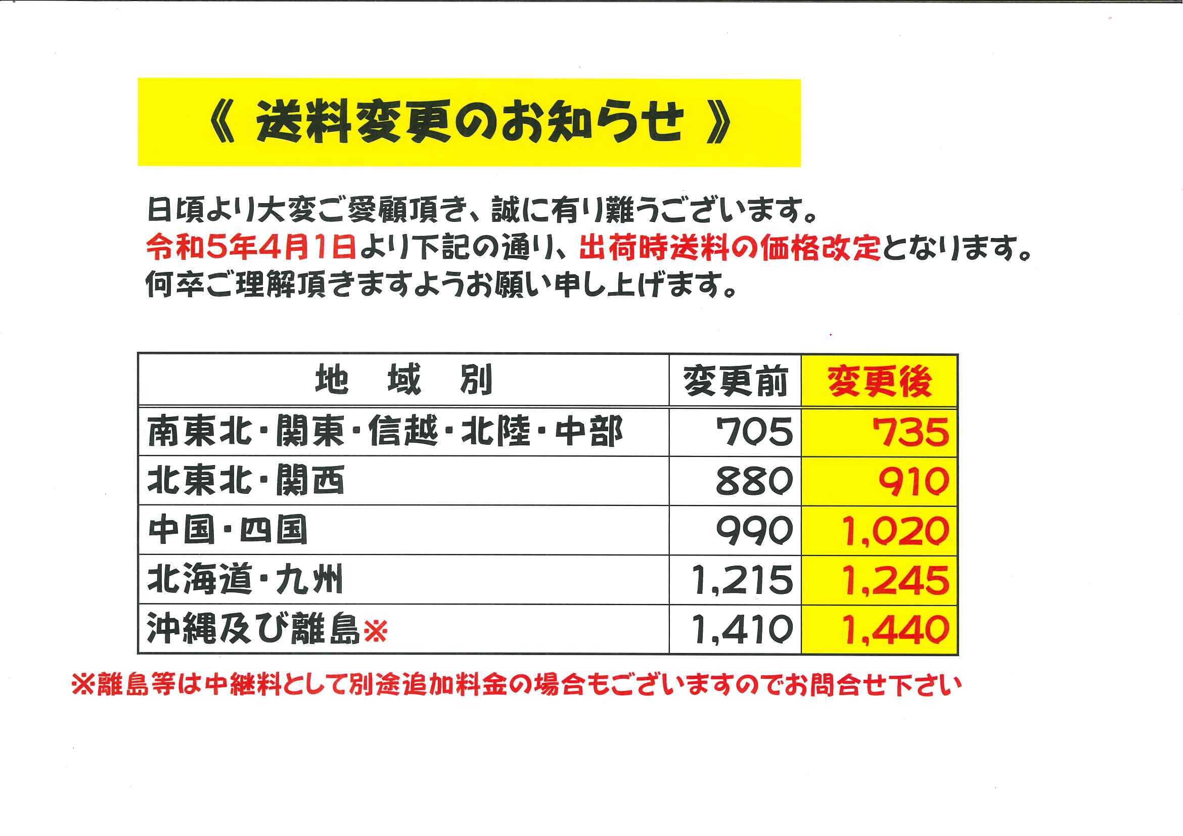 送料に変更がございます
